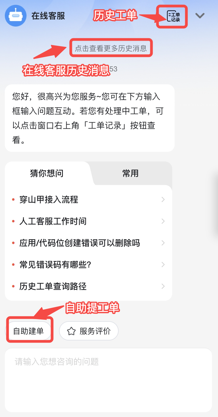 在线客服整合了 在线问答 和 工单管理 能力,为您提供全方位的问题解决支持。
