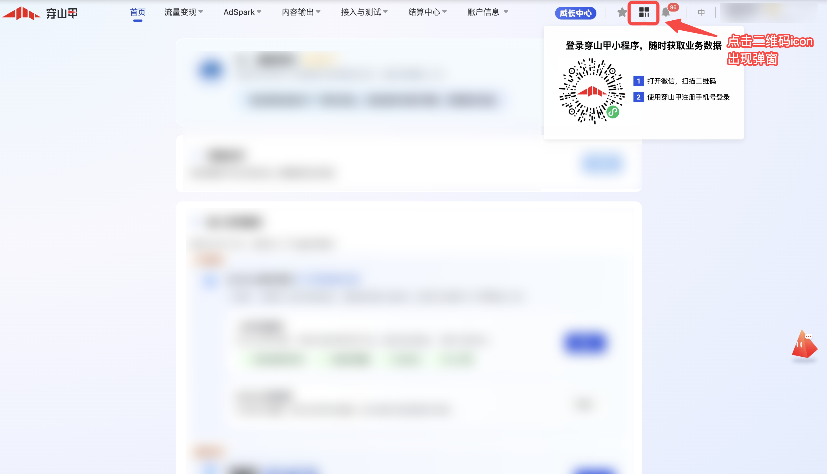 进入后,使用 穿山甲注册手机号 登录,即可查看手机号所绑定的平台账户信息。