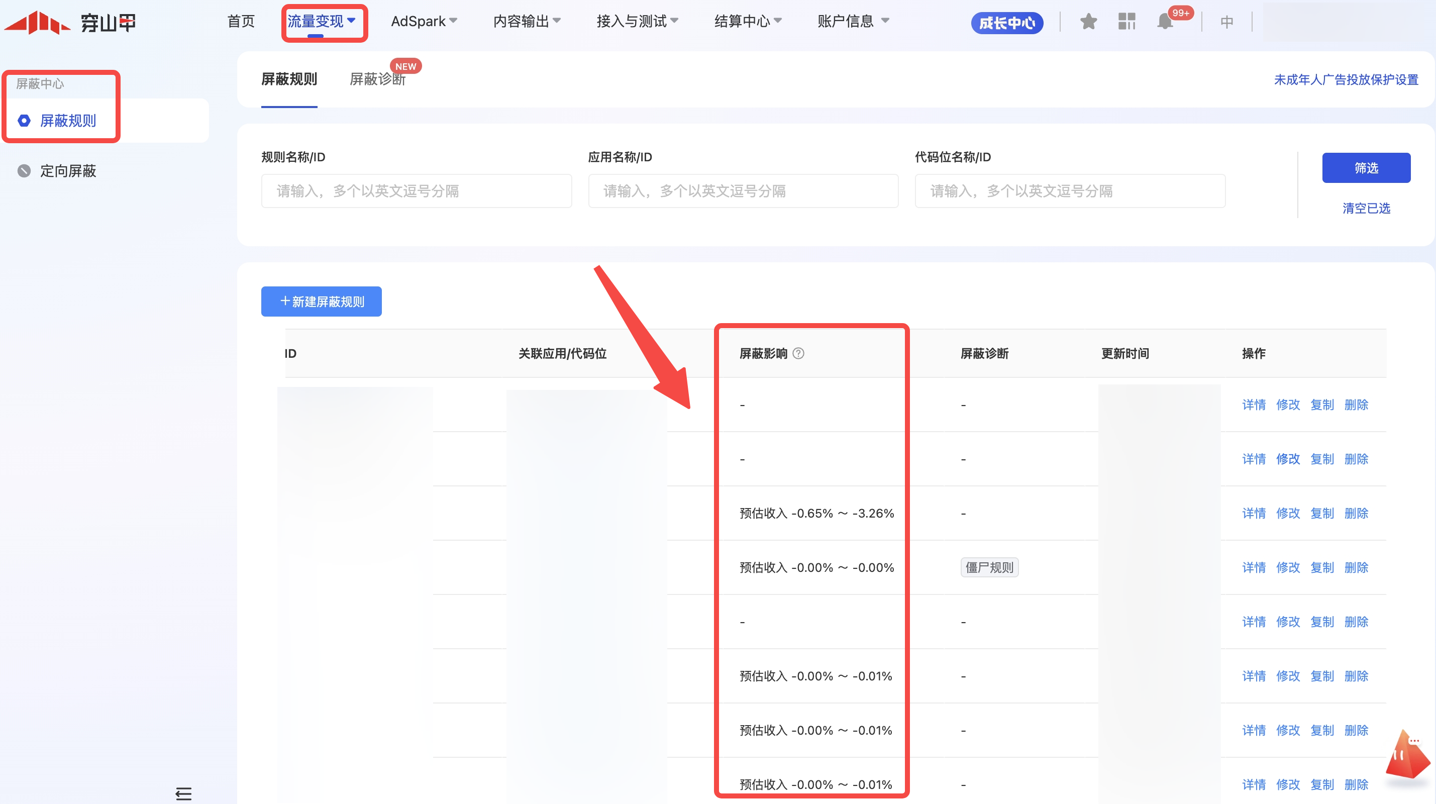 流量变现-屏蔽中心-屏蔽规则
